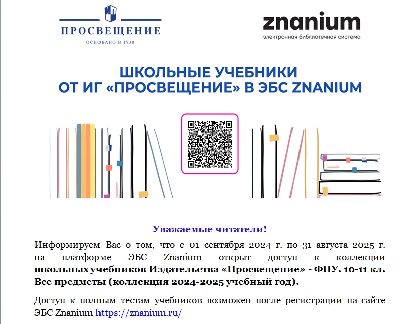 Полную информацию о ресурсе и регистрации в ЭБС смотрите в разделе Тестовый доступ