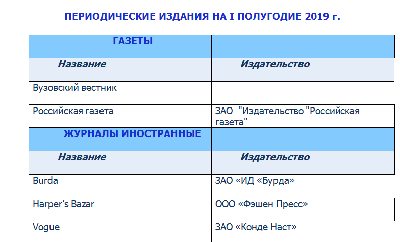 Периодические издания 2019